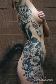 FULL SIDE BODY TATTOOS ,SKULL AND ROSES