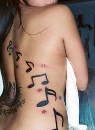 MUSIC TATTOO ON BACK BODY OF GIRL WITH STARS