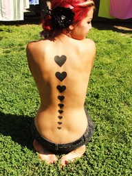PRETTY BLACK HEART TATTOO ON BACK BODY OF A GIRL