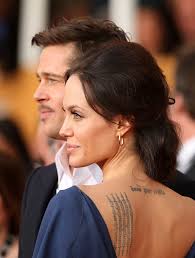 Quote tattoo n Angelina Jolie neck and shoulder