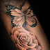Pinkish butterfly and rose tattoo on arm