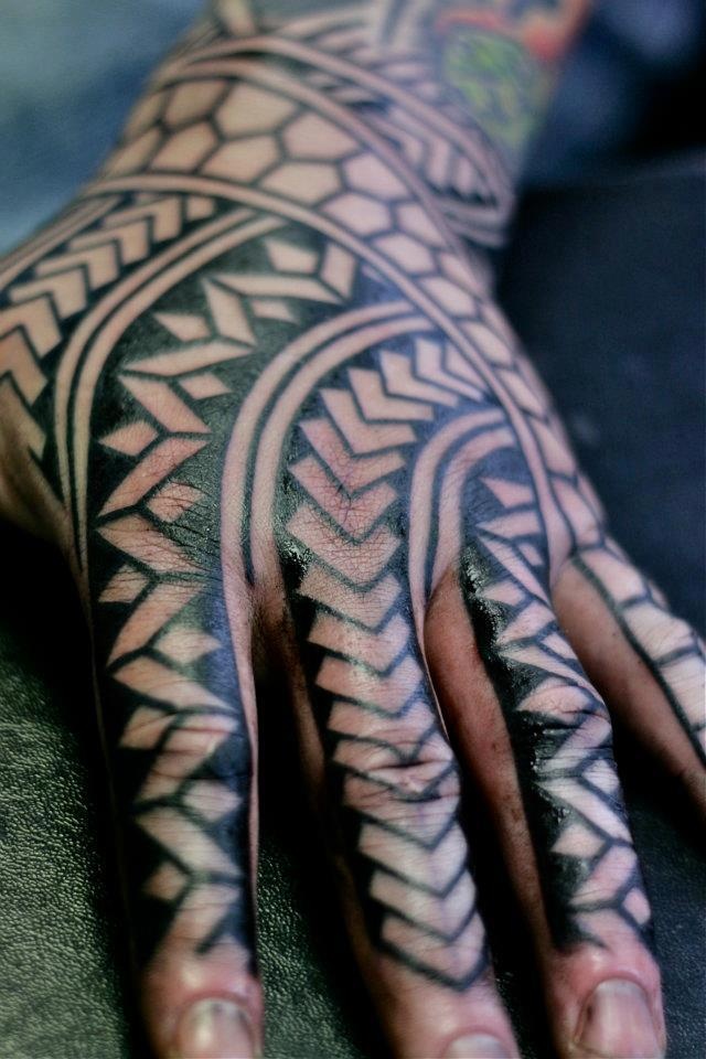 Curly tattoo on whole hand