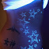 Black light star tattoos on back body