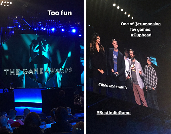 Last Thursday was finally the day for the awards and the evening did not disappoint. We had such a blast and it was SO cool to see just how much goes into creating these games. A lot of the categories were similar to the Oscars—Best Art Direction, Best Score, etc.—but there were a lot of unique categories I didn't expect, like Best Student Game and Games for Impact.