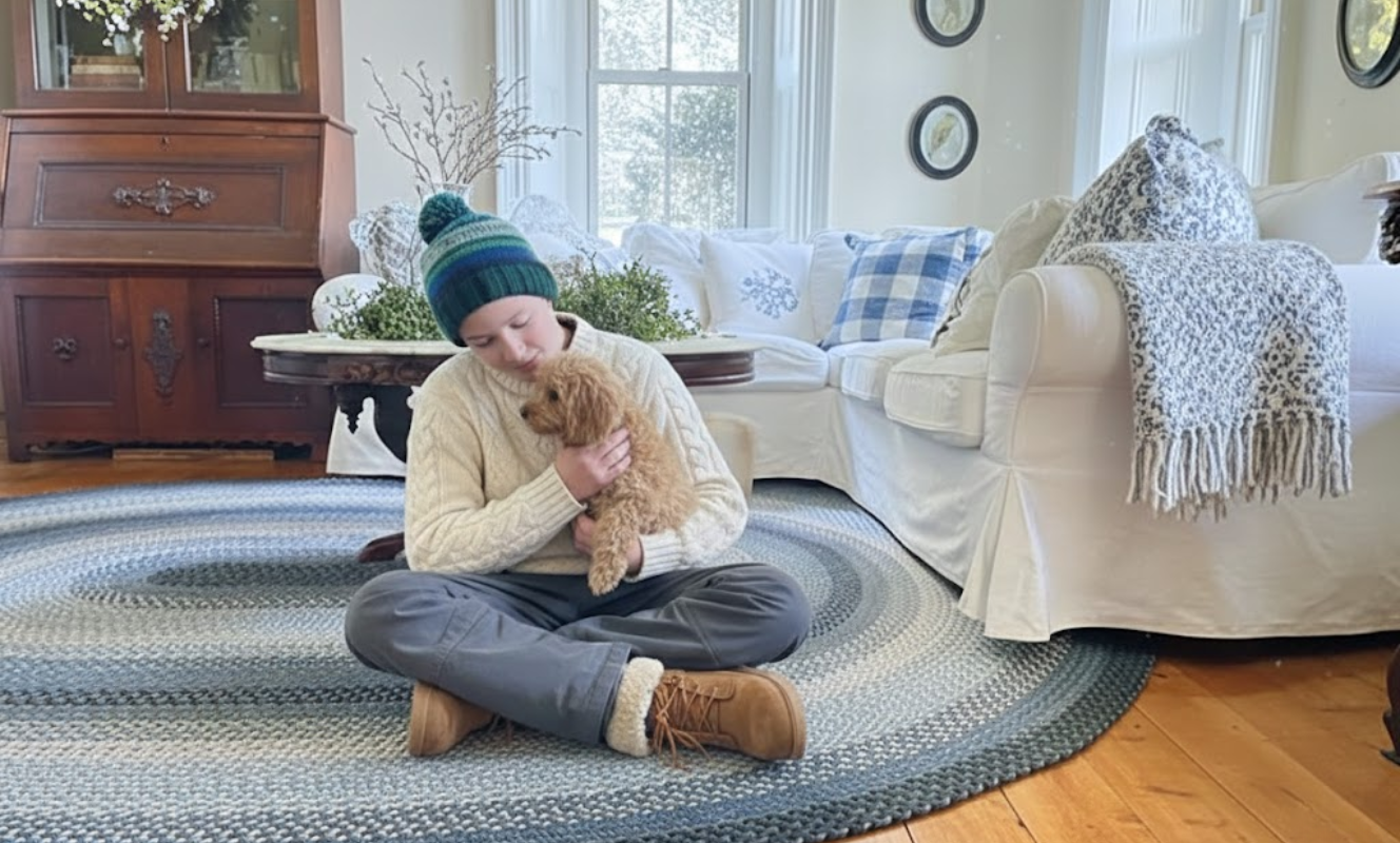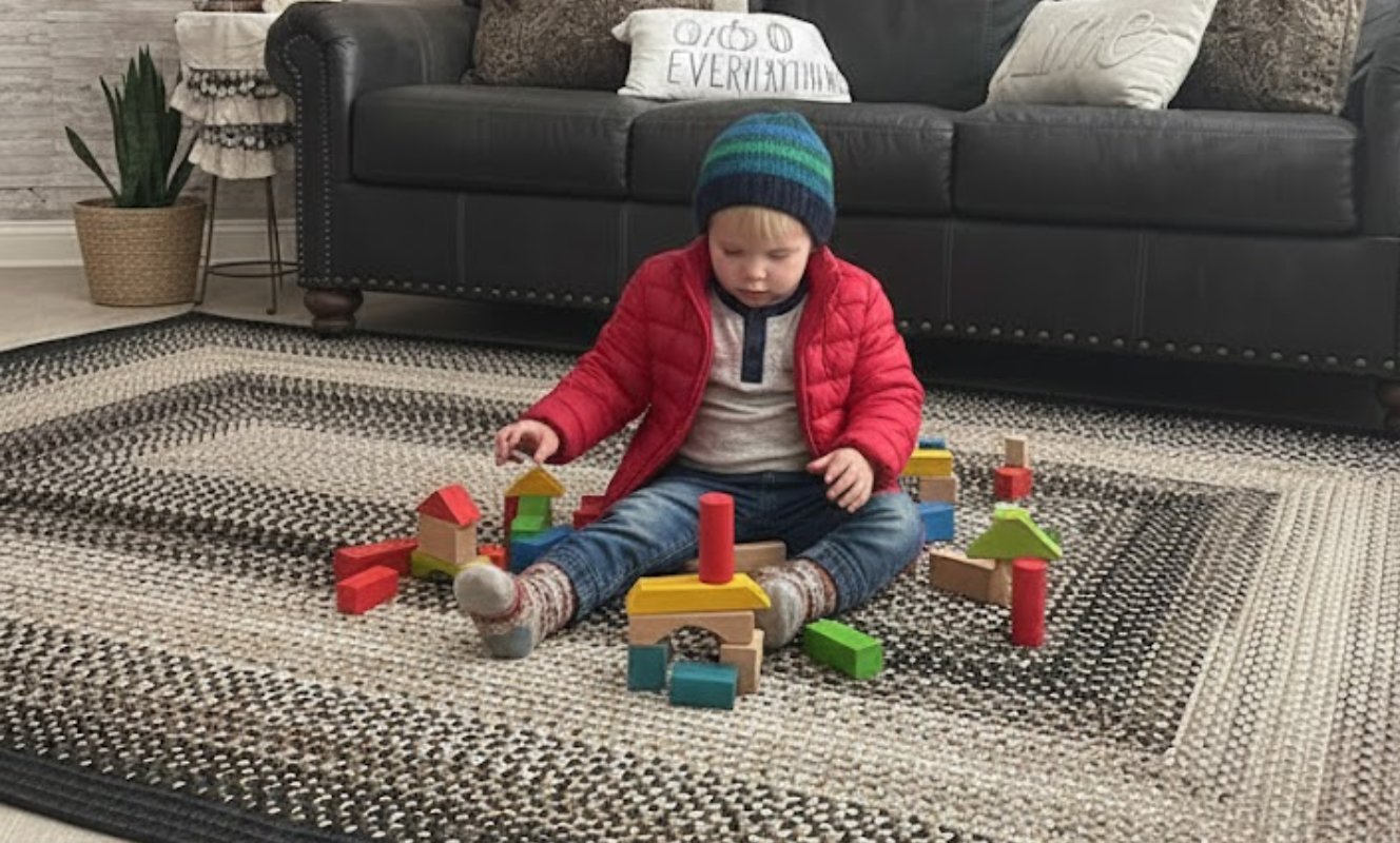 High-pile or fluffy rugs may look cute, but they can cause tripping. A braided rug lies flat, stays in place, and provides a stable surface for busy little feet.