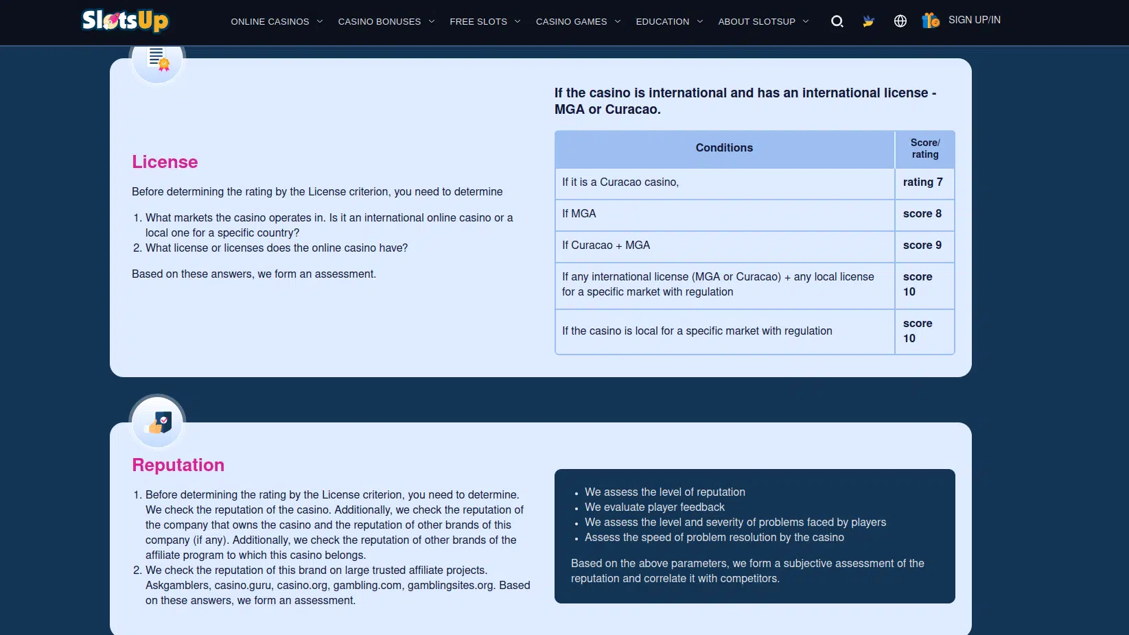 - Clear scoring criteria. Casinos are rated using transparent benchmarks, such as license validity, payout methods, customer grievances, and game fairness.